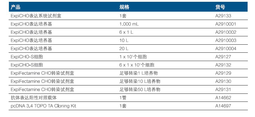 ?????????? l 1套Gibco ExpiFectamine CHO 轉(zhuǎn)染試劑盒,足夠轉(zhuǎn)染1升培養(yǎng)物