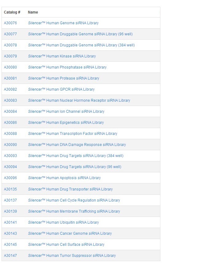 ?? 現(xiàn)有的預(yù)定?Silencer?Select siRNA文庫
