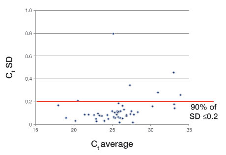 重復(fù)性高:在較寬的動(dòng)態(tài)范圍內(nèi)都能獲得可重復(fù)性的Ct值